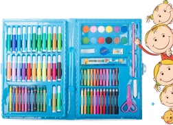 Dette alsidige malesæt i en robust plastkuffert udvikler kreativitet og finmotorik. Børn kan nemt kombinere farveblyanter, tuscher, oliepasteller og akvarelfarver og skabe originale kunstværker. De kompakte mål og det praktiske håndtag gør det let at transportere.