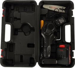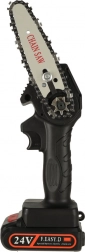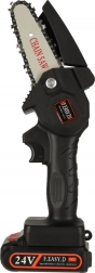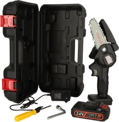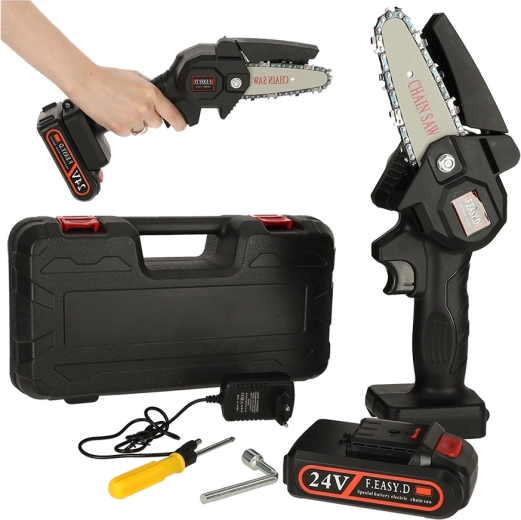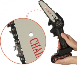 Bærbar batteridrevet mini-kædesav, som er en fantastisk hjælper for enhver gartner eller hobbyist. Takket være dens lave vægt og kompakte dimensioner er den let at bruge og tillader effektivt arbejde selv på svært tilgængelige steder.