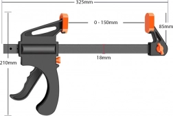 Denne lette og robuste enhåndsklemme er ideel til træarbejde, montage og gør-det-selv-projekter. Det hurtigspændende glidesystem muliggør bekvem betjening med én hånd, mens den gummierede aftrækker hjælper med jævn dosering af spændetrykket. Ved at omstille den øverste kæbe skifter du nemt til sprederfunktion.