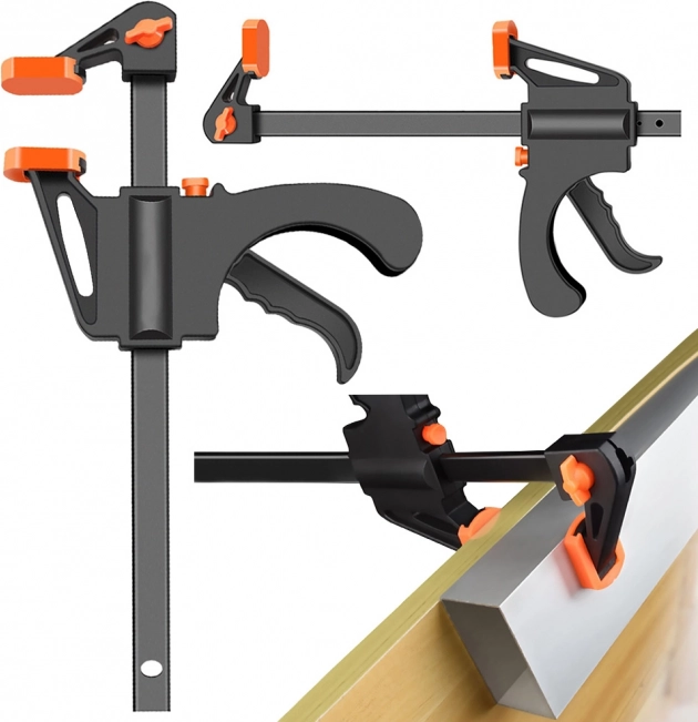 Brede kæber med plastbeskyttere skåner emnets overflade mod mærker og ridser. Klemmen er fremragende til limning, fiksering under skruning og præcis samling af dele.