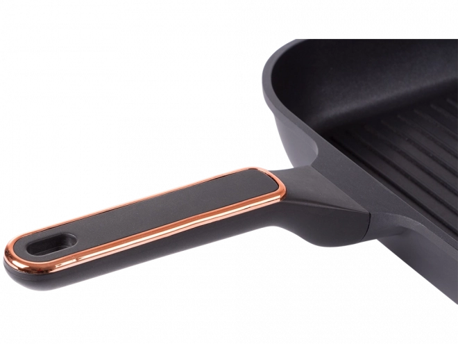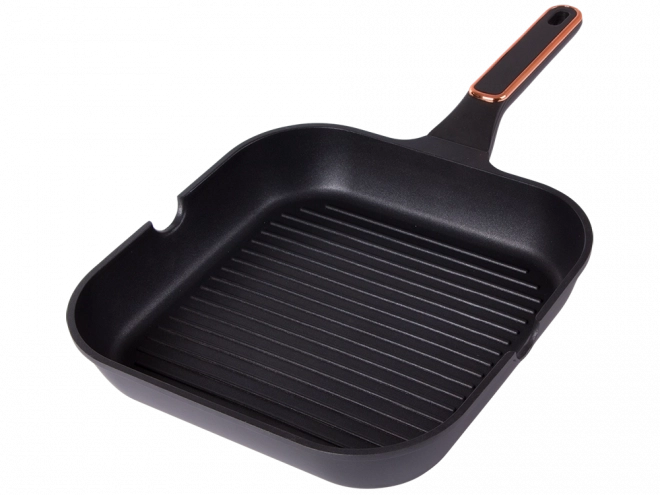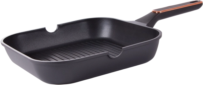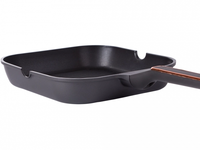 Robust grillpande 28 cm af trykstøbt aluminium med nonstick-belægning for nem madlavning og rengøring. Velegnet til induktion, gas, glaskeramiske og elektriske kogeplader. Den riflede overflade giver en grilleffekt, hældetude på begge sider gør det nemt at hælde fra, og det ergonomiske håndtag sikrer et sikkert greb.