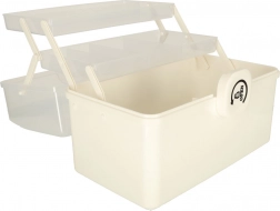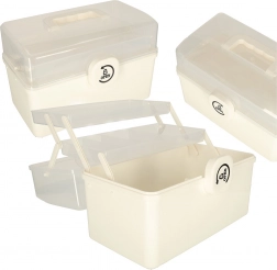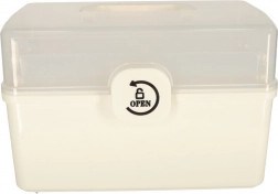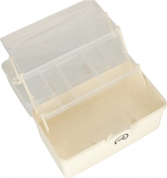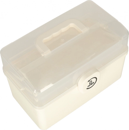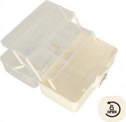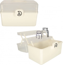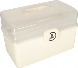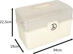 Det gennemsigtige låg giver dig hurtig adgang til det nødvendige uden at skulle åbne arrangøren. Det praktiske håndtag gør det nemt at bære, både hjemmet og på rejser eller udflugter. Det indre udstyr indeholder højdejusterbare skillevægge for bedre organisering.