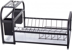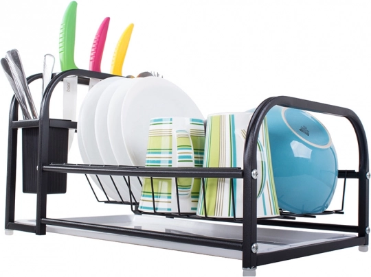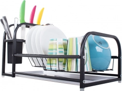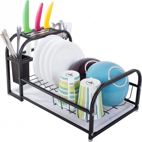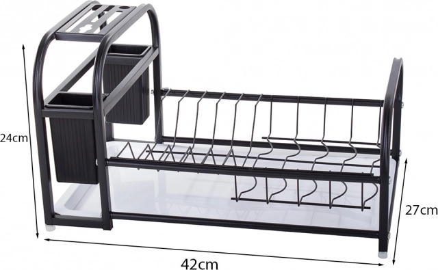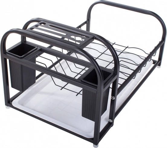 Dette moderne opvaskestativ kombinerer solidt metal med pulverlakering og holdbare plastkomponenter. Det er modstandsdygtigt over for fugt og skader, hvilket gør det ideelt til daglig brug i et travlt køkken. Loft-designet i elegant sort harmonerer let med enhver indretning og bliver en funktionel dekoration på bordpladen.