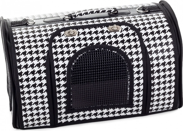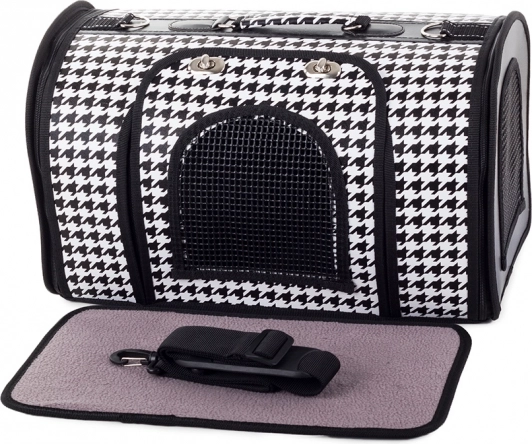 Transporttaske til kæledyr 44 cm – pepitomønster, ventileret og vandafvisende