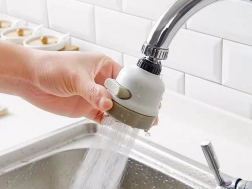 Designet i plast er konstrueret til nemt at fastgøre til standard køkkenarmaturer. Dens tretrins spraymuligheder giver dig alsidigheden mellem en klassisk strøm, bred spray og blid spray, hvilket gør forskellige køkkenopgaver som opvask eller skylning af madvarer nemmere.
