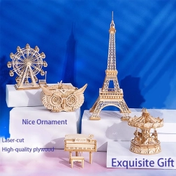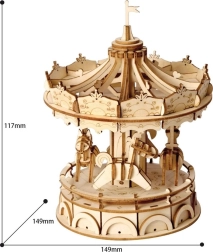 Oplev magien ved traditionelt håndværk med en 3D træmodel af en karrusel. Dette sæt tilbyder en komplet oplevelse fra start til slut. Kvalitets- og sikre materialer garanterer en behagelig samleproces, og det færdige produkt bliver til en iøjnefaldende dekoration.