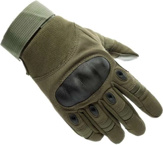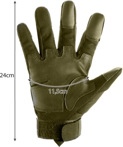 Alsidige taktiske handsker fra TRIZAND i størrelse XL i khaki, der tilbyder knobeskyttelse, fast greb og kompatibilitet med touchskærme. Takket være åndbart materiale, forstærkede håndflader og justerbar manchet med velcrolukning sidder de fantastisk, beskytter mod snavs og er klar til sport, outdoor og taktiske aktiviteter.