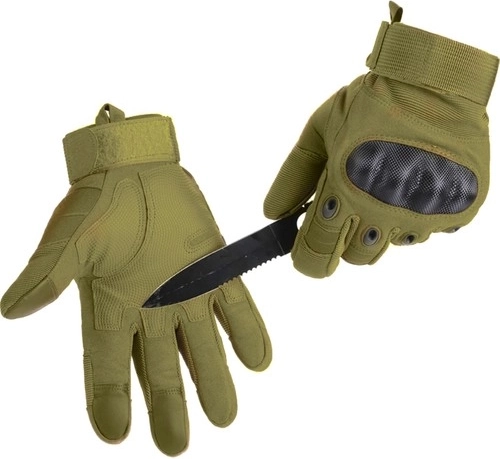 Taktiske handsker Trizand i khaki er designet til maksimal komfort og funktionalitet. Takket være kompatibilitet med touchskærme kan du betjene din smartphone uden at tage handskerne af. Indersiden af handskerne er forstærket og giver øget beskyttelse under krævende forhold.