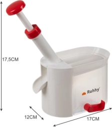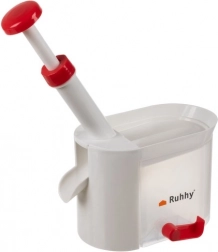 Kerneudsteneren er hurtig og præcis, hvilket gør det muligt at forberede en stor mængde kirsebær på meget kortere tid. Det fjerner stenene uden at knuse frugten, hvilket er ideelt til fremstilling af syltetøj med hele frugter. Den nederste del indeholder en silikonesugekop, der sikrer stabilitet under arbejdet på bordet.