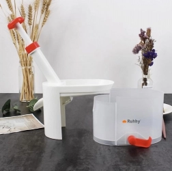 De udtagne sten falder ned i en speciel opsamlingsbeholder, der nemt kan tømmes efter hver brug. Frugten glider automatisk ned i en forberedt beholder. Denne komfortable og effektive enhed værdsættes af både begyndere og erfarne konservatorer.
