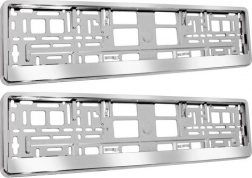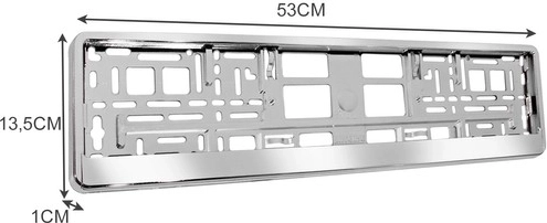 Indholdet af pakken: 2x nummerpladerammer med dimensioner 53 x 13,5 x 1 cm og vægt 381 g hver, samlet pakkevægt 538 g.