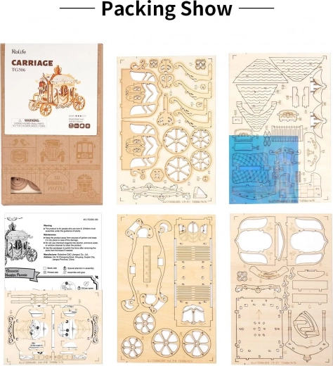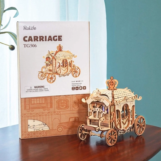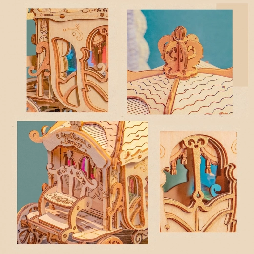 Byg en eventyrlig dekoration af naturligt træ. 3D-puslespillet ROLIFE tilbyder 92 præcist laserudskårne brikker i lindetræsfiner, som passer sammen uden lim. Modellen af en klassisk karet udmærker sig ved fine indgraverede detaljer, udvikler finmotorik, teknisk tænkning og bliver efter færdiggørelse en stilfuld dekoration og en original gave.