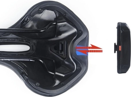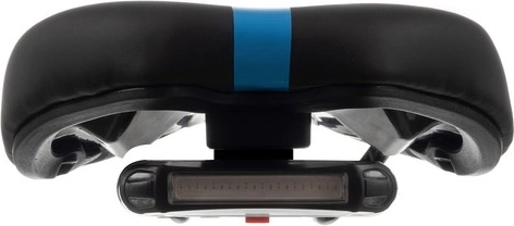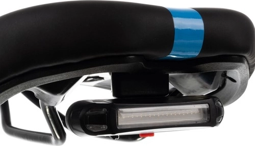 Indbygget lys: Sadlen er udstyret med baglys med fem belysningstilstande i rød og blå. Lyset oplades via USB og kan let fjernes til opladning uden at skulle fjerne hele sadlen.