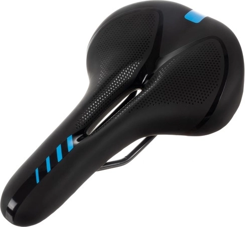 Blød og komfortabel: Sadlen er lavet af blødt polyurethanskum, hvilket sikrer komfort under kørsel, og den profilerede form giver komfort. Dette design støtter korrekt kropsholdning under cykling, hvilket er vigtigt for længere ture.