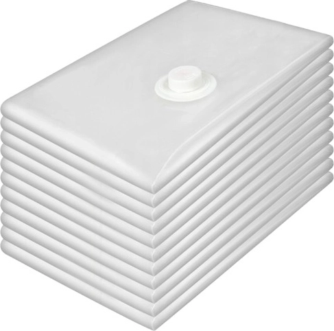 Sættet indeholder 10 gennemsigtige poser på 50 × 70 cm samt en praktisk håndpumpe med gevind for nem udsugning. Poserne egner sig til tøj, sweatre, jakker, sengetøj og andre tekstiler og kan bruges gentagne gange.