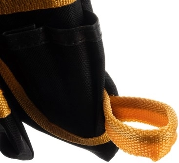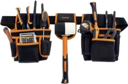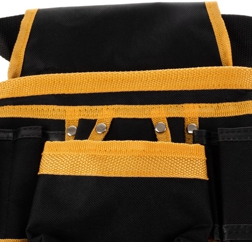 Bæltet indeholder forskellige typer lommer og løkker, som gør det muligt at transportere og opbevare forskellige værktøjer, inklusive elektrisk værktøj.