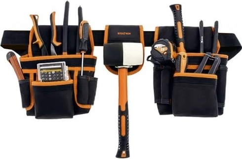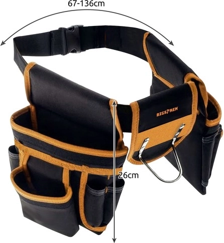 Værktøjsbæltet Bigstren er udstyret med 22 lommer, inklusive to løkker og en hammerholder, som gør det muligt sikkert at opbevare og transportere forskellige værktøjer som skruetrækkere, nøgler, tænger, målebånd og endda elektriske værktøjer.