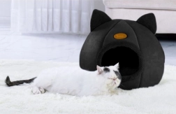 Fantastisk design: Takket være husets form med ører behager det ikke kun din kat, men fungerer også som en usædvanlig dekoration i hjemmet.