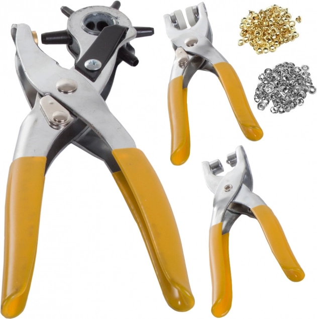 Dette sæt indeholder tre værktøjer til læderbearbejdning samt tilbehør i form af 100 stykker nitter og 100 stykker tryklåse. Værktøjerne er fremstillet af robust stål, der er modstandsdygtigt over for deformation, hvilket sikrer deres lange levetid.