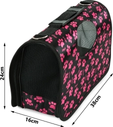 Denne transporttaske er udstyret med et behageligt håndtag til at bære den i hånden samt en justerbar skulderrem. Den har et effektivt ventilationssystem med to store, luftige gitre og et vindue. To lynlåse gør det muligt at åbne eller lukke tasken hurtigt for nem placering af dit kæledyr.
