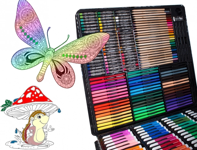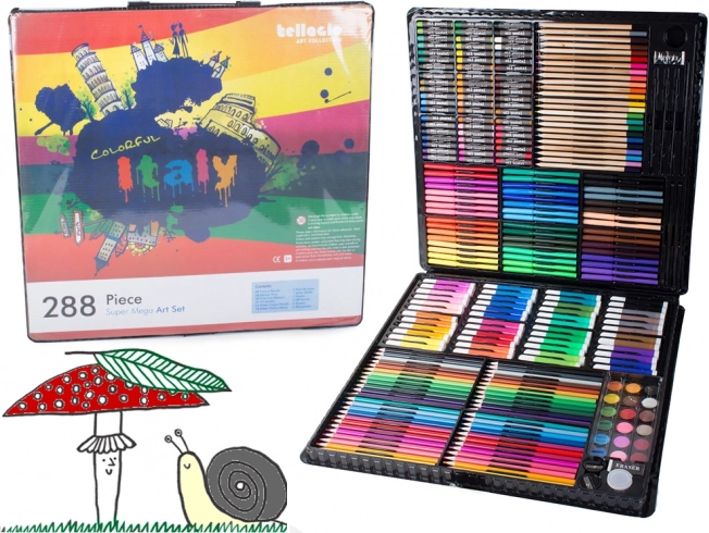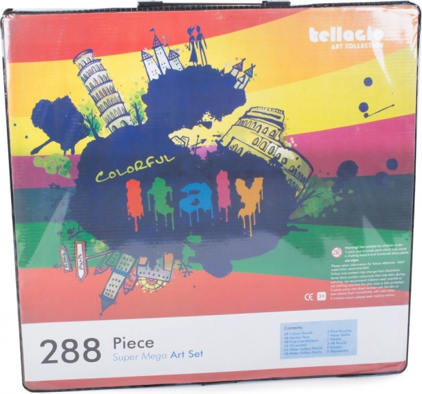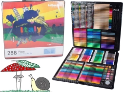 Indeholder alt, der er nødvendigt for at udvikle kreativitet: farveblyanter, tuscher, oliepasteller og akvarelfarver – i alt 288 elementer.