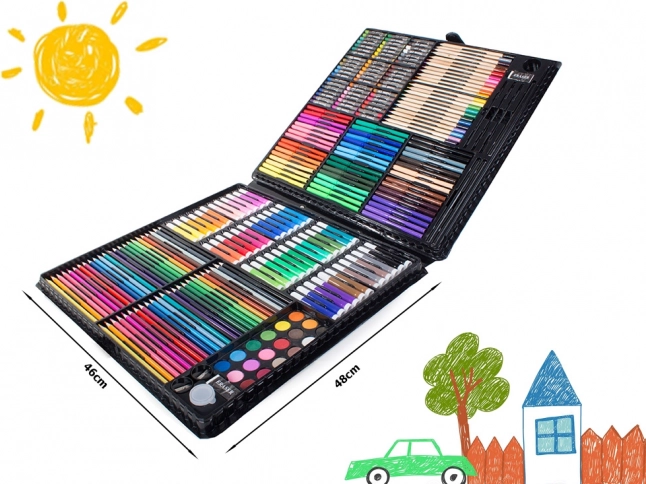 Med dette kunstnersæt vil hvert kreativt barn være begejstret. Det indeholder alt, hvad der er nødvendigt for at skabe fantastiske værker, uanset om det er tegning, maling eller design. Alle værktøjer er pænt arrangeret i kufferten, hvilket gør det nemt at transportere og organisere de enkelte dele.