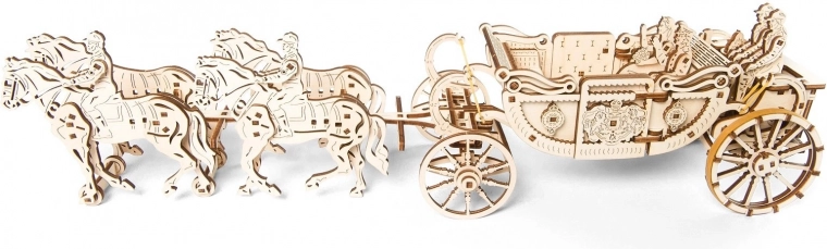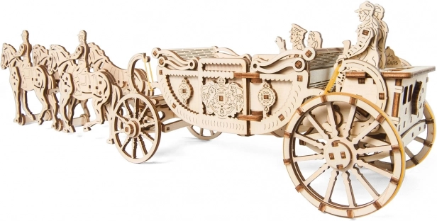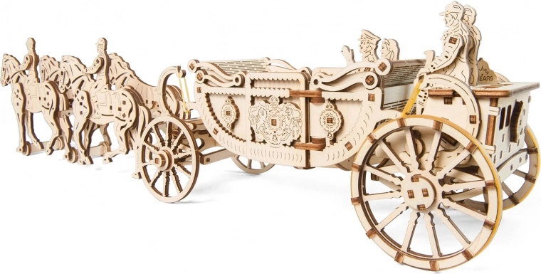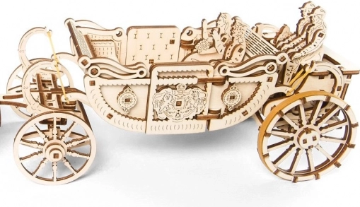 Det elegante byggesæt af den kongelige karet fra UGEARS bringer atmosfæren af højtidelige optog og historisk håndværksskønhed. Med en trækonstruktion af kvalitetsfiner, detaljeret udførelse og en gennemtænkt optræksmekanisme får du en model, der ikke blot ser fantastisk ud, men også virkelig kører.