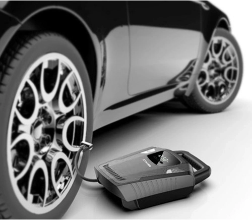 Det klare display viser tryk i PSI og BAR, og kompressoren slukker automatisk, når måltrykket er nået. Sådan opnår du let det ideelle tryk uden overpumpning.