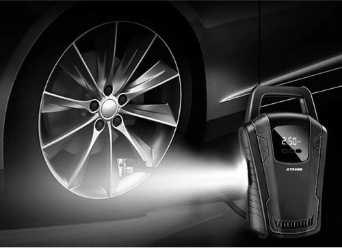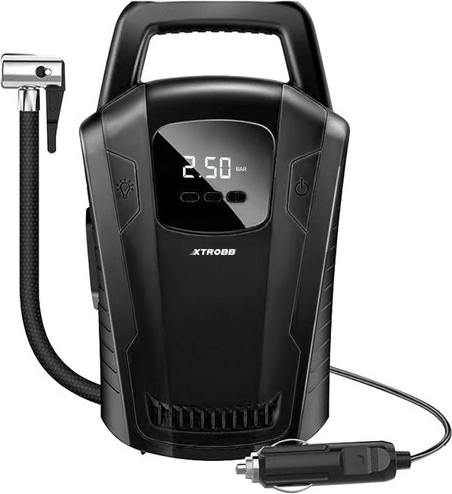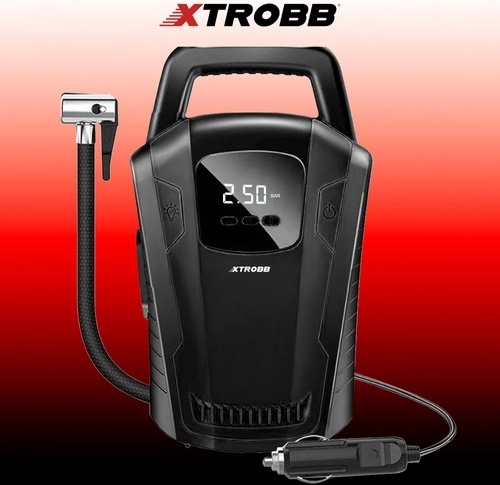 Hold korrekt dæktryk for højere sikkerhed, længere levetid og lavere brændstofforbrug. Denne bærbare XTROBB 12V kompressor er udstyret med et elektronisk manometer med LCD, der viser tryk i PSI og BAR, samt Auto‑Stop – den slukker automatisk, når det indstillede tryk er nået. Den integrerede LED-lygte gør arbejdet nemmere i skumring og om natten.