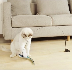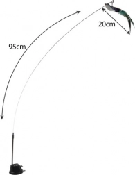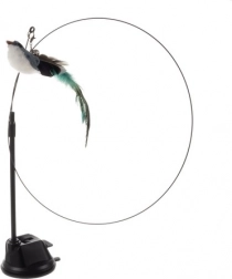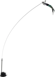 Den lange elastiske stang med attraktive elementer for enden fanger kattens opmærksomhed og opmuntrer til hop og fangst. Fuglen pyntet med lange fjer og en blid klokke øger tiltrækningskraften.