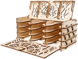 Gør organiseringen af din kortsamling til en fornøjelse. UGEARS trææske kombinerer funktionelt design, mekanisk elegance og håndværksmæssig kvalitet. Med en simpel drejning af låsen åbnes æsken og folder sig glidende ud til en overskuelig “trappe”, som gør det hurtigt at finde og sortere kort.