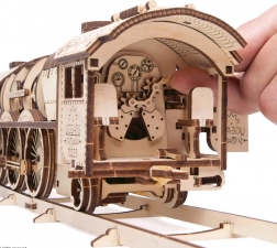 UGEARS V-Express er et enestående træbyggesæt for krævende entusiaster, der forener klassisk jernbanemagi med smart mekanik. Det åbne “karrosseri” lader dig følge gear, tandhjul og knastmekanisme i aktion. Takket være optrækksmotoren kan modellen virkelig køre og giver en realistisk køreoplevelse inklusive friløb og bakgear.
