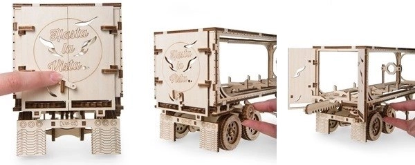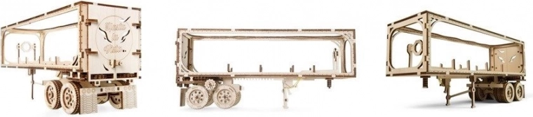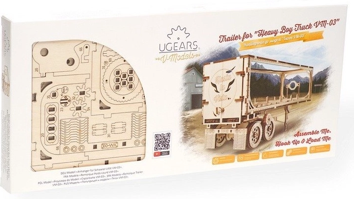 Denne UGEARS-trailer til den legendariske lastbil HEAVY BOY VM-03 er et detaljeret træ 3D-puslespil, som kombinerer traditionelt materiale og mekanisk bevægelse. Samlingen foregår uden lim; delene trykkes ud af forskårne plader og samles nemt efter den detaljerede billedvejledning.