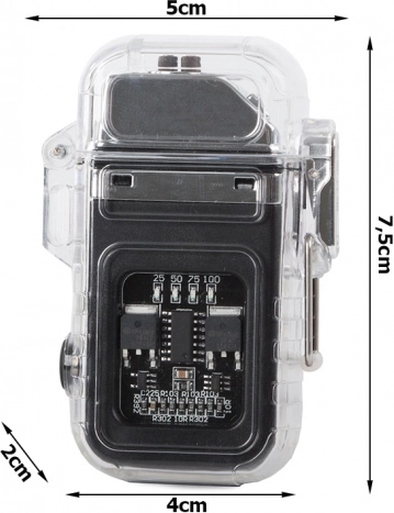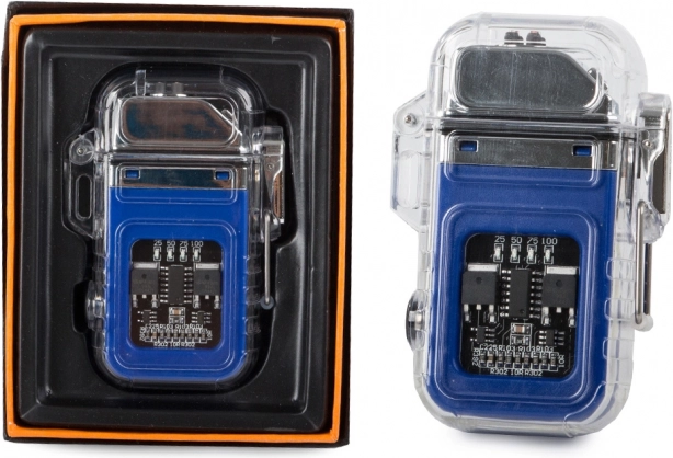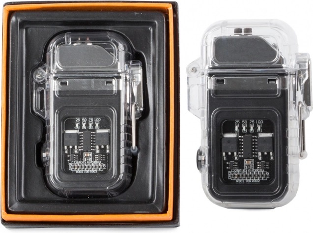 Det robuste hus med tætning, gummiknap og låg med klips øger modstanden mod fugt og stød. Lighteren oplades nemt via micro USB (kabel medfølger), og fire blå LED'er viser tydeligt opladningsniveauet (100/75/50/25 %). I pakken finder du en elegant gaveæske, så den egner sig perfekt som gave.