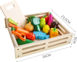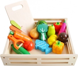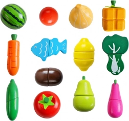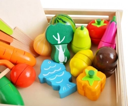 Opdag et træ-sæt, der forvandler enhver børnemadlavning til et sjovt og lærerigt eventyr. Realistisk udformede frugter, grøntsager og fisk er opdelt i dele og forbundet med velcro, så børn kan skære dem sikkert og sætte dem sammen igen. Livlige farver fanger opmærksomheden og motiverer til at udforske smage og former.