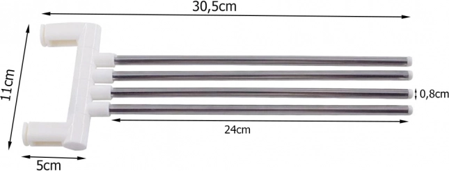 Hver arm kan drejes og indstilles separat, så håndklæder tørrer bedre og ikke er i vejen. Længden på 24 cm er ideel til både håndklæder og viskestykker.