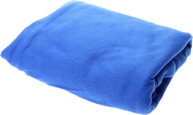 Varm fleeceplaid med ærmer i XXL i blå. Blød, komfortabel, glider ikke og giver bevægelsesfrihed. Kan maskinvaskes, universel størrelse.