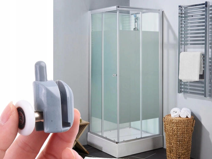 Hjulene er monteret på kuglelejer for glidende bevægelse uden hakken. Den universelle konstruktion passer til de fleste brusekabiner og glasdøre med en tykkelse på 4–6 mm. Takket være materialerne plast + stål er komponenterne rustbestandige og holder til daglig drift.