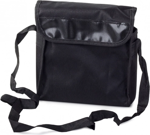 Inkluderer objektiv- og okularbeskyttere, rengøringsklud, nakkestrop og en robust taske med rem for nem transport.