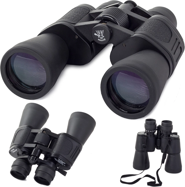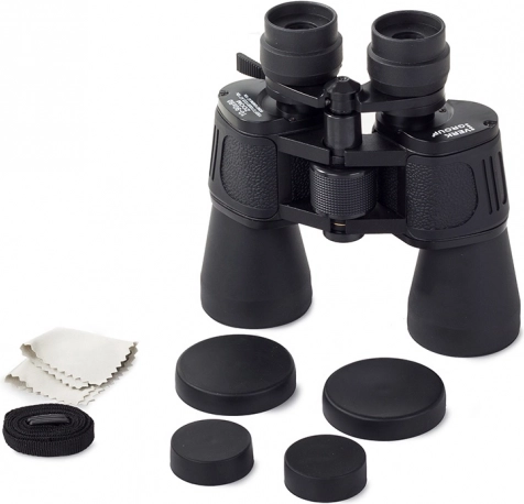 Til længere observationer kan kikkerten monteres på et stativ ved hjælp af den integrerede gevind. Kikkerten leveres med beskyttende dæksler til okularer og objektiver, en rengøringsklud og et robust etui med skulderrem for nem transport.