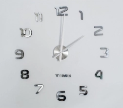 Sølvfarvede 3D tal giver uret en moderne stil, der skiller sig ud i ethvert rum.