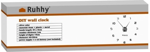 Takket være den stille mekanisme med glidende gang forstyrrer uret ikke arbejde eller afslapning. De selvklæbende tal i EVA-skum hæfter godt på de fleste glatte overflader, og den særlige papirskabelon gør det nemt at markere cirklen præcist. Lange, elegante visere i sølv fremhæver det rene design.