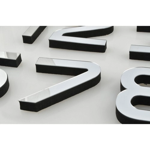 De skinnende sølvfarvede dæksler på tallene skaber en moderne 3D-effekt, der tager sig godt ud på enhver væg og giver rummet et lysere udtryk.