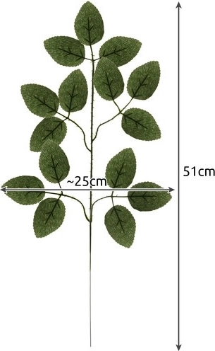 Tilfør frisk grønhed i indretningen uden besvær. Dette sæt indeholder 12 realistiske kviste med rosenblade i størrelsen 51 × 25 cm, lavet af holdbare materialer. Takket være den indvendige tråd i hovedstilk kan de nemt formes til arrangementer. Ideelle til vaser, guirlander og sæsondekorationer. Vedligeholdelsesfri, naturtro udseende, lang levetid.
