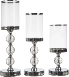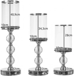 Pynt dit hjem med det elegante sæt med 3 lysestager Glamour. Hver lysestage er lavet af en kombination af metal og glas, hvilket sikrer høj kvalitet og æstetik.