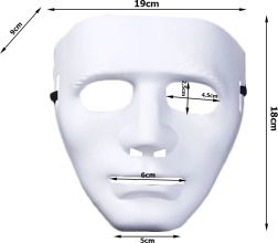 Takket være de kompakte mål 19 × 18 × 9 cm er masken nem at transportere og klar til at fuldende dit halloweenkostume eller horrorkostume. Den minimalistiske hvide farve gør det let at matche med forskelligt tilbehør og tøj.