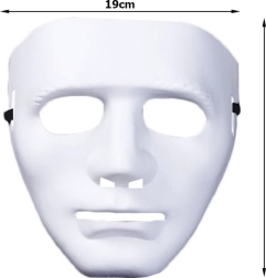 Denne hvide plastmaske med et ikonisk udtryk giver dit kostume en autentisk horrorstemning. Takket være den lave vægt og den elastiske rem sidder den behageligt på ansigtet, og ventilationsåbninger i næse og mund sikrer bedre åndbarhed under brug. Den er perfekt til Halloween, tematiske horror-fester, karnevaller samt foto- og teaterforestillinger.