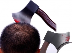 To ender af “øksen” fastgjort til hårbøjlen skaber en overraskende realistisk effekt uden en dråbe blod. Ideel til et horror-look, der vækker opsigt.