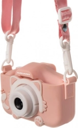 Blød silikone med søde katteelementer beskytter kameraet mod ridser og små stød og ligger samtidig godt i en barnehånd.