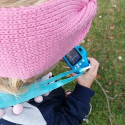 I pakken medfølger et 32GB hukommelseskort, så børnene kan gå i gang med det samme. Der er selfie-kamera, masser af sjove rammer og filtre (sort/hvid, sepia, negativ), serieoptagelse og auto-sluk for at spare strøm. Den silikone kattebeskyttelse og stroppen sikrer sikker bæring.
